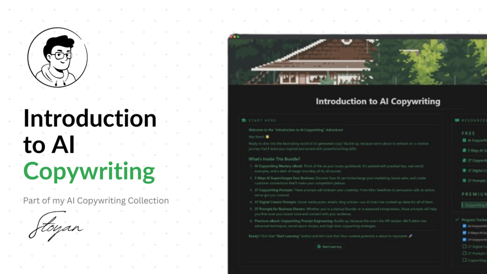 When you purchase our bundle, you’ll learn AI-powered copywriting techniques, discover how AI can supercharge your business, and gain access to a variety of creative prompts to enhance your writing skills.